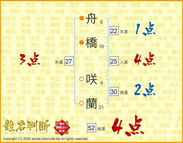 舟橋咲蘭さんの総運は52画の4点!