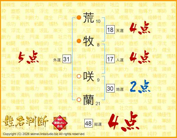 荒牧咲蘭さんの総運は48画の4点!