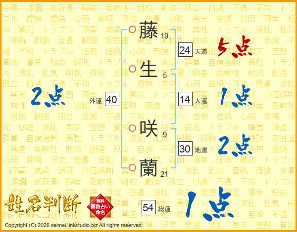藤生咲蘭さんの総運は54画の1点!