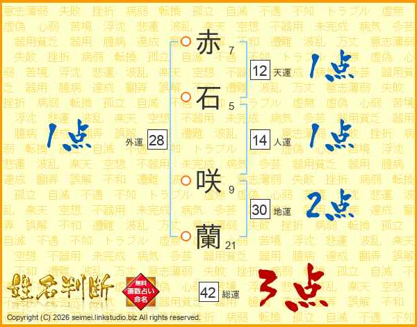 赤石咲蘭さんの天運は12画の1点!