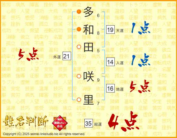 多和田咲里さんの総運は35画の4点!