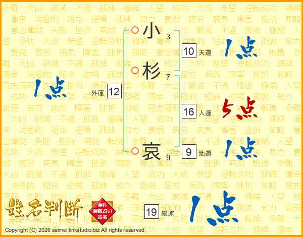 小杉哀さんの総運は19画の1点!