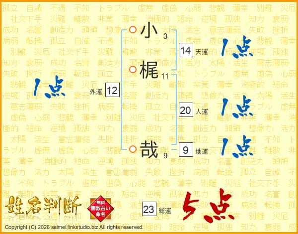 小(3画)梶(11画) 哉(9画)