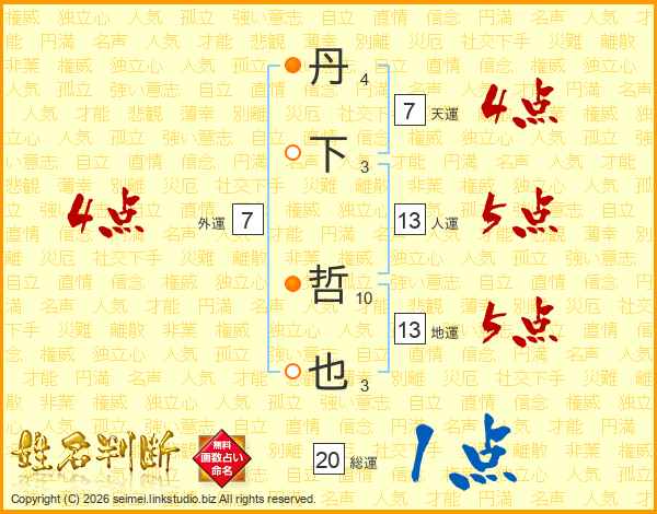 丹下哲也さんの人運は13画の5点!