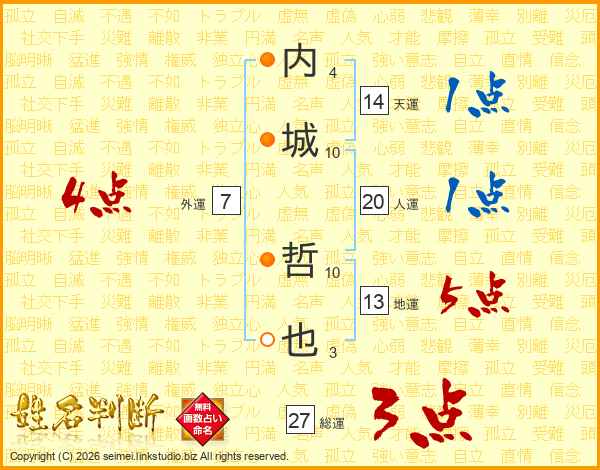 内城哲也さんの天運は14画の1点!