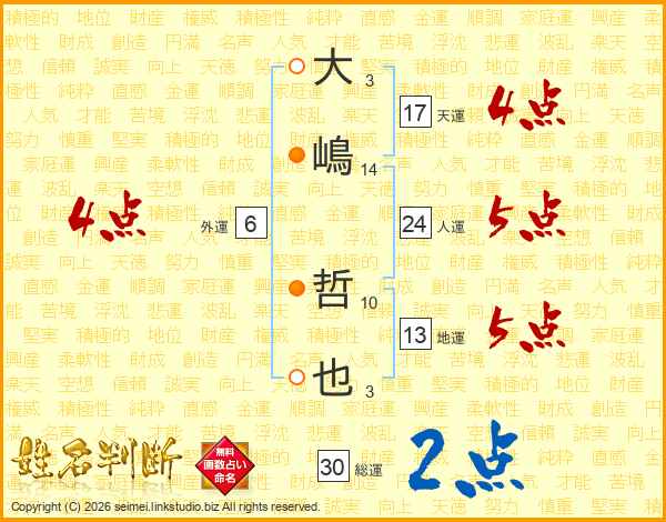 大嶋哲也さんの天運は17画の4点!