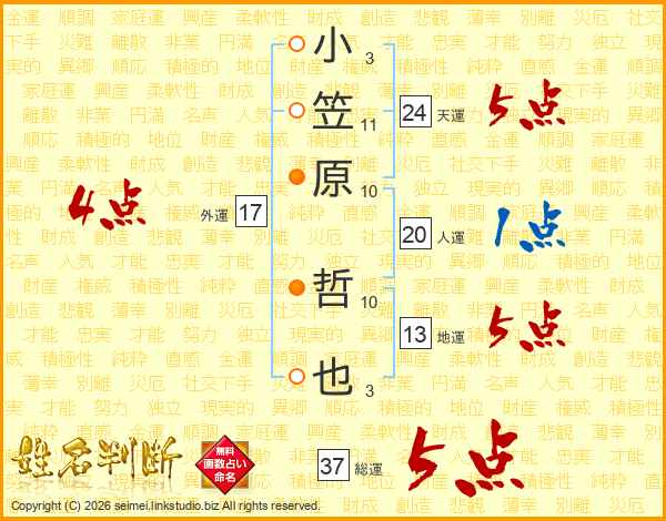 小笠原哲也さんの総運は37画の5点!