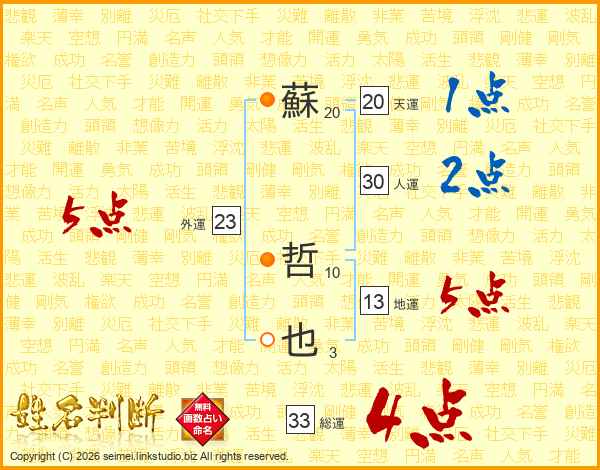 蘇哲也さんの総運は33画の4点!