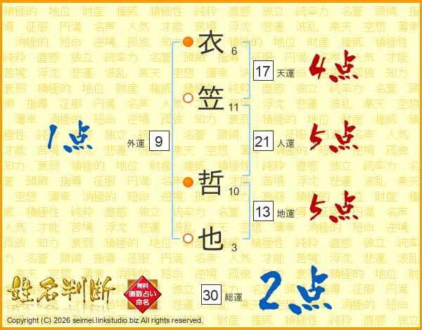 衣笠哲也さんの天運は17画の4点!