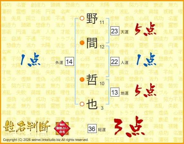 野間哲也さんの人運は22画の1点!