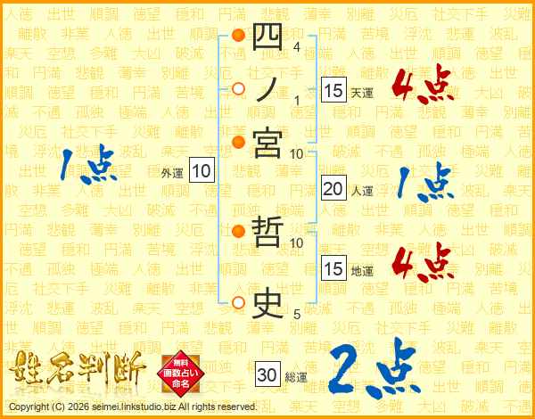 四ノ宮哲史さんの人運は20画の1点!