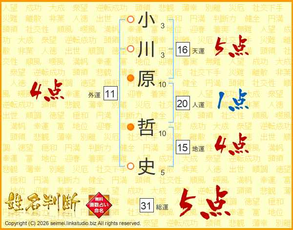 小川原哲史さんの総運は31画の5点!
