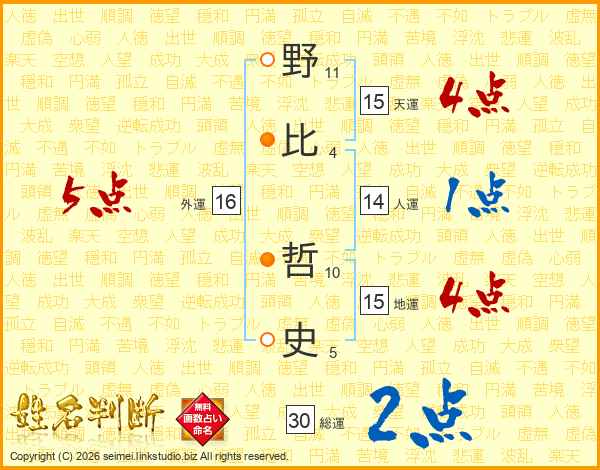 野比哲史さんの天運は15画の4点!