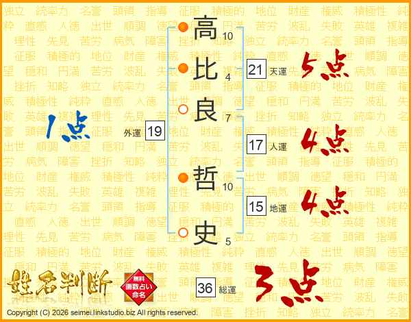 高(10画)比(4画)良(7画) 哲(10画)史(5画)