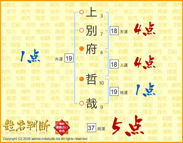 上別府哲哉さんの総運は37画の5点!