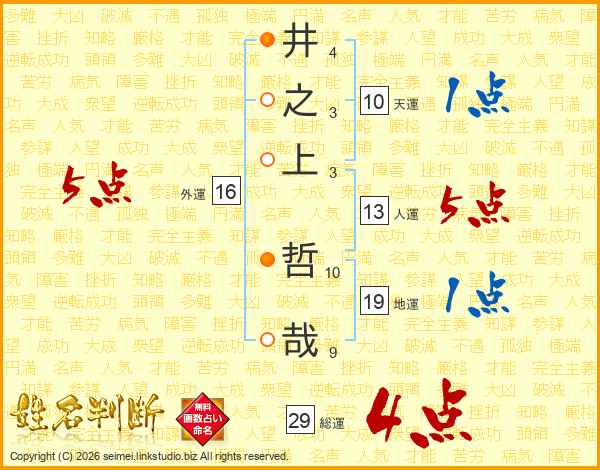 井之上哲哉さんの総運は29画の4点!