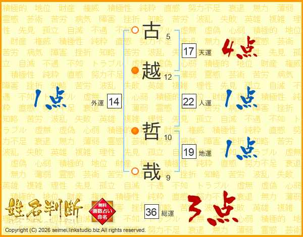 古越哲哉さんの総運は36画の3点!