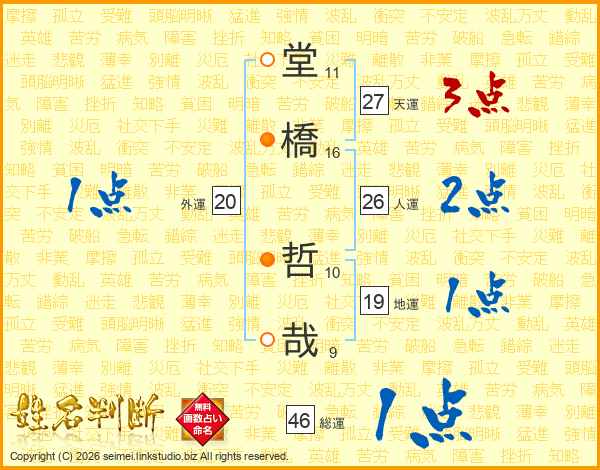 堂(11画)橋(16画) 哲(10画)哉(9画)