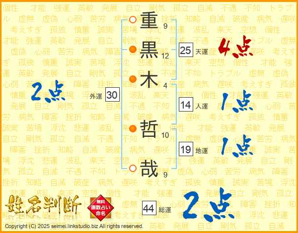 重(9画)黒(12画)木(4画) 哲(10画)哉(9画)