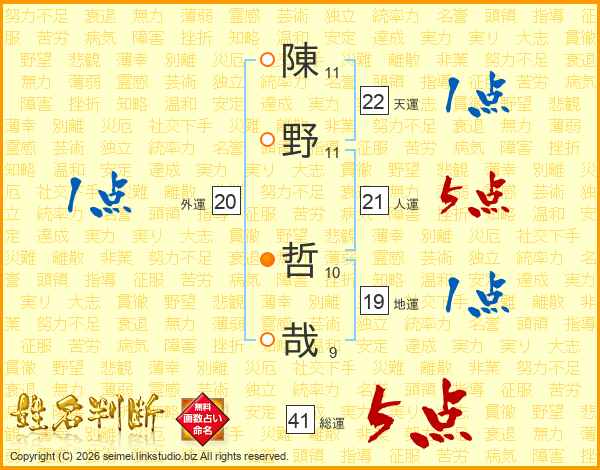 陳野哲哉さんの総運は41画の5点!