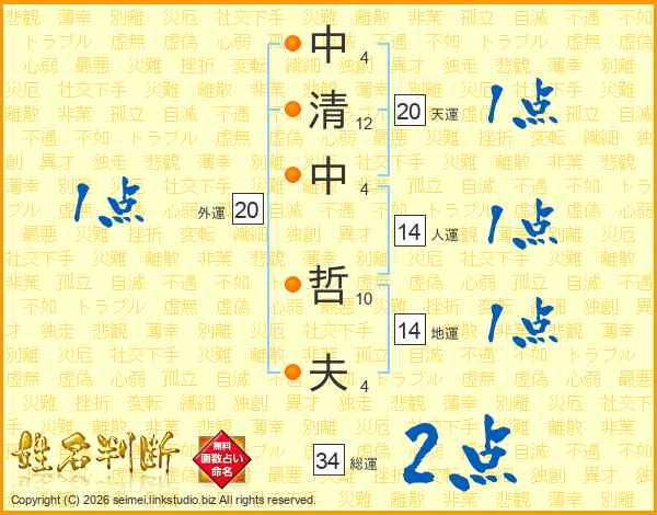 中清中哲夫さんの総運は34画の2点!