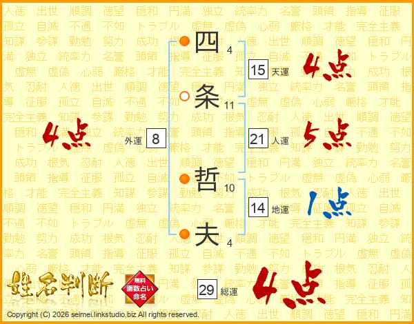 四条哲夫さんの総運は29画の4点!