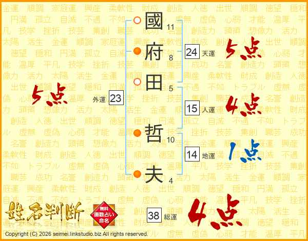 國(11画)府(8画)田(5画) 哲(10画)夫(4画)