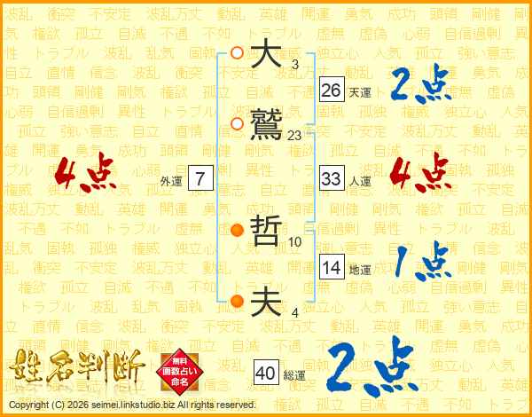大鷲哲夫さんの天運は26画の2点!