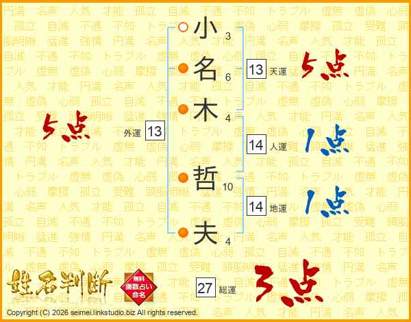 小(3画)名(6画)木(4画) 哲(10画)夫(4画)