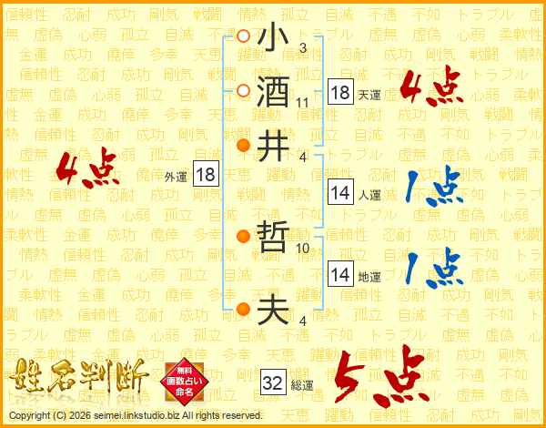 小(3画)酒(11画)井(4画) 哲(10画)夫(4画)