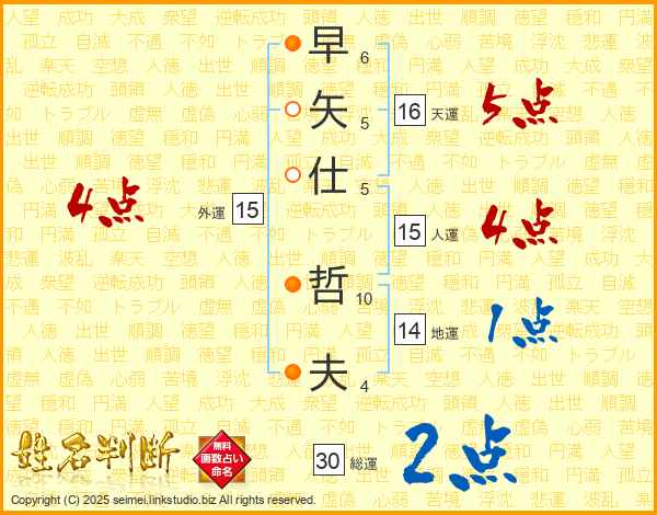 早(6画)矢(5画)仕(5画) 哲(10画)夫(4画)