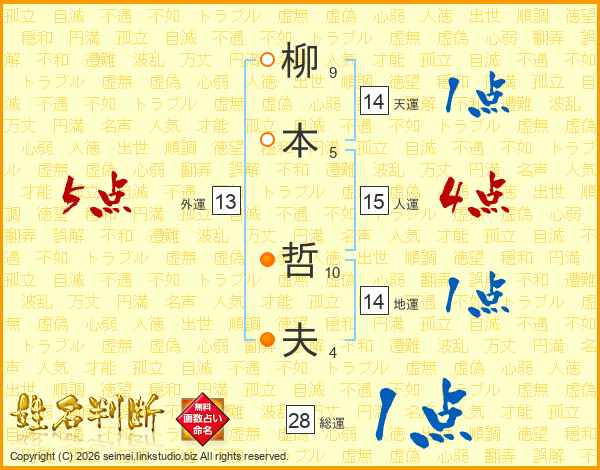 柳本哲夫さんの天運は14画の1点!