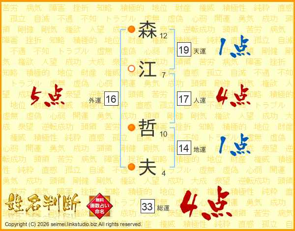 森(12画)江(7画) 哲(10画)夫(4画)