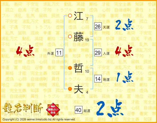 江(7画)藤(19画) 哲(10画)夫(4画)