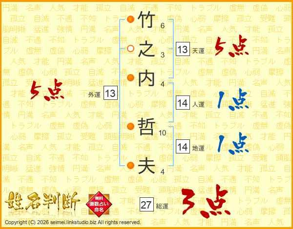 竹(6画)之(3画)内(4画) 哲(10画)夫(4画)