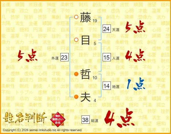 藤目哲夫さんの総運は38画の4点!