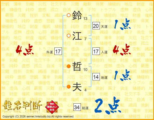 鈴江哲夫さんの人運は17画の4点!