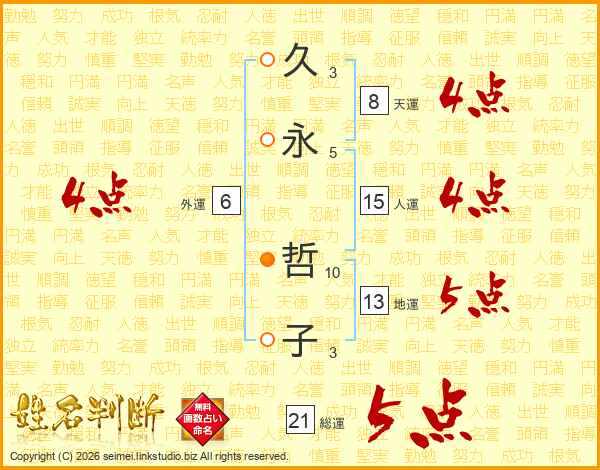 久(3画)永(5画) 哲(10画)子(3画)