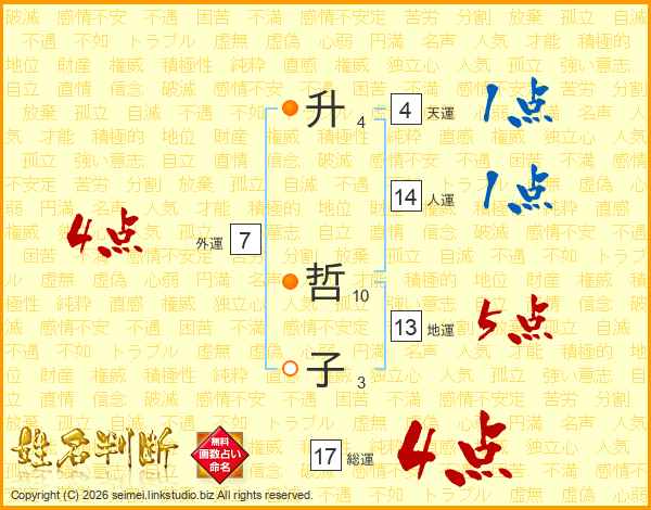 升哲子さんの総運は17画の4点!