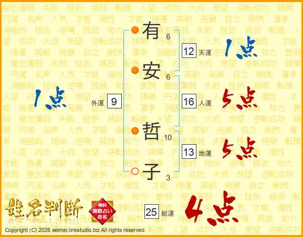 有安哲子さんの総運は25画の4点!