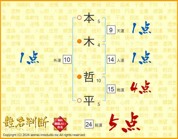 本(5画)木(4画) 哲(10画)平(5画)