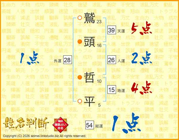 鷲頭哲平さんの総運は54画の1点!