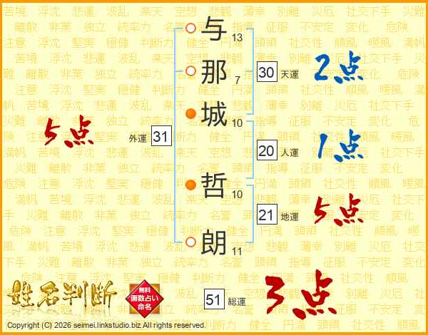 与那城哲朗さんの地運は21画の5点!
