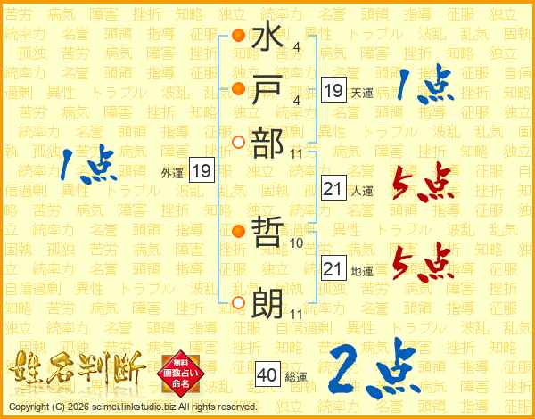 水戸部哲朗さんの人運は21画の5点!
