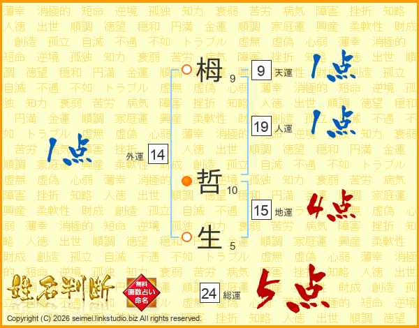 栂哲生さんの総運は24画の5点!
