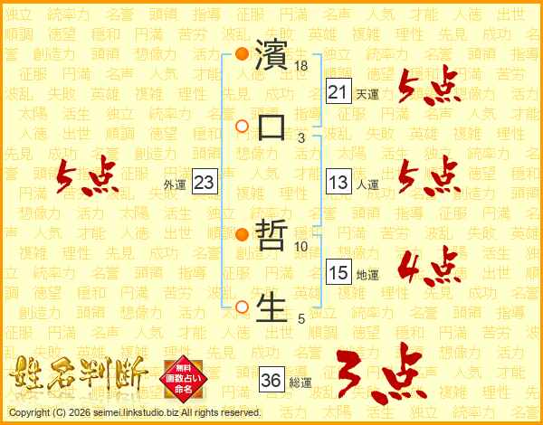 濱口哲生さんの総運は36画の3点!