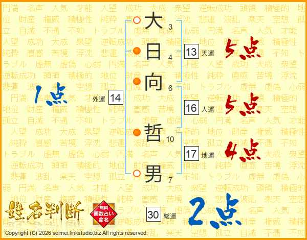 大日向哲男さんの総運は30画の2点!