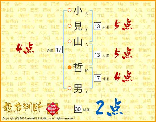 小(3画)見(7画)山(3画) 哲(10画)男(7画)