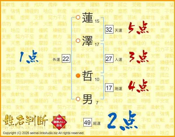 蓮澤哲男さんの地運は17画の4点!