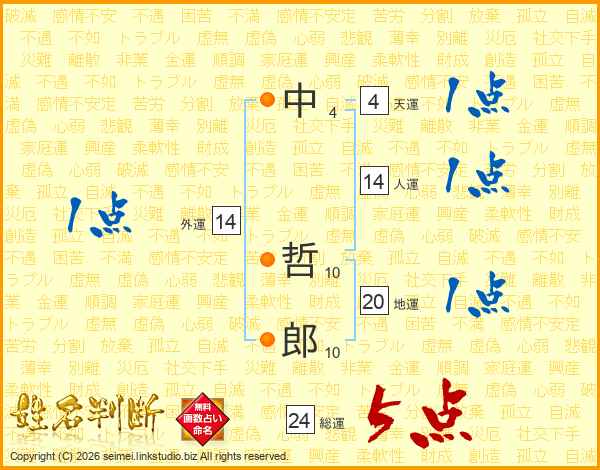 中(4画) 哲(10画)郎(10画)